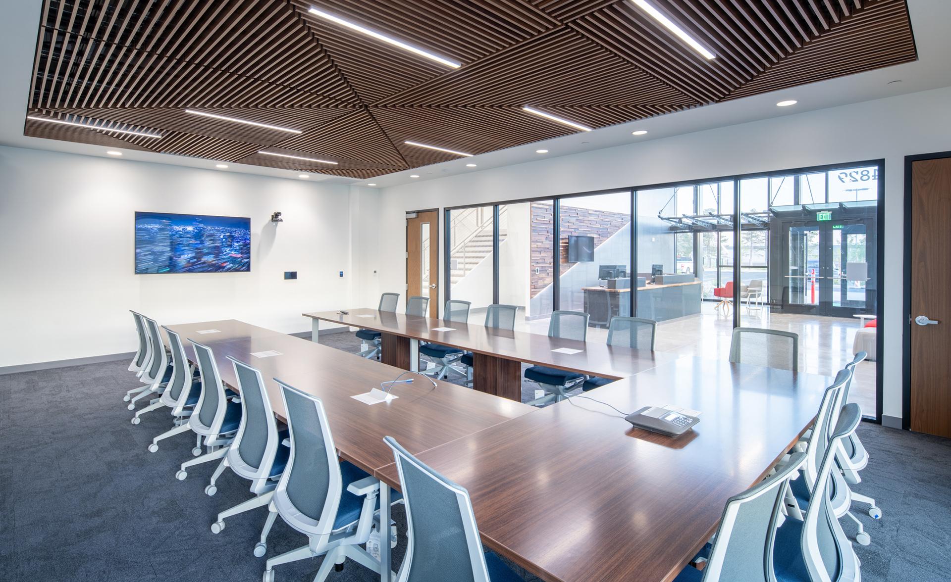 This two-story building is a steel-frame structure finished with metal panels and dynamic curtainwall glazing. Interior spaces include four high-ceiling bays with full motion simulators, four procedure trainers, seven classrooms, ten briefing rooms, offices, a conference room, and a café. Finishes are all high-end, consistent with the Delta brand, and executed at the highest quality and attention to detail. Exterior scope included utility coordination, site paving, landscaping, etc. This facility significantly enhances Delta’s training capabilities, providing easier access for pilots based in the western U.S.