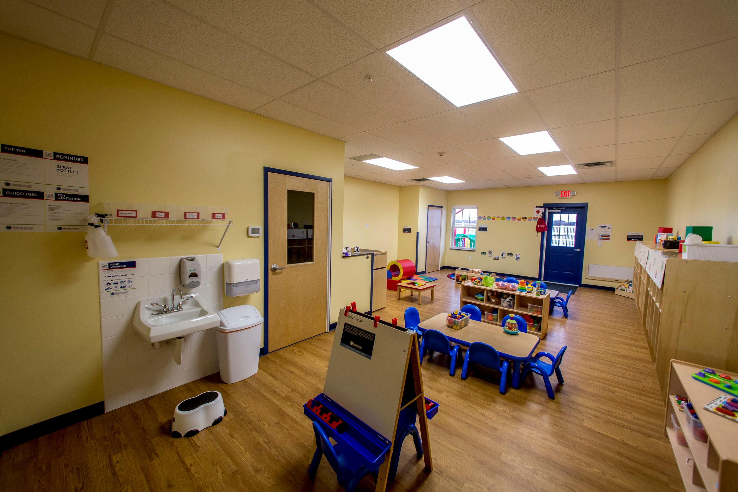 The Goddard School Lakeville is an 8,000 sf, single story, school. The project envelope consists of wood frame construction, brick, and shingle roof and vinyl window. The interior consists of multiple classrooms fitted with painted walls, VCT flooring and ACT ceilings.