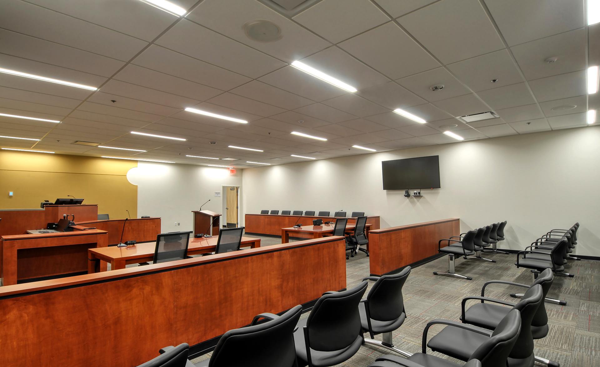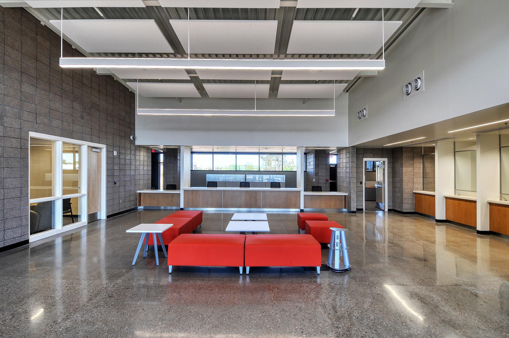 The Pinal County Complex, designed to house both the Western Pinal Justice Court and Maricopa Municipal Court, consists of two new single-story buildings, 8,314-sf and 24,046-sf respectively. The larger of the two wraps around the existing courts building with various structural additions and renovations, and will accommodate added courtrooms, judge’s chambers and facilities for the Pinal County Sheriff including holding cells, interview rooms, office space and K9 kennels. The smaller facility houses general offices for Pinal County employees, including the county treasurer and assessor. Scope involved site demolition of an existing parking lot, hardscape and landscape, civil, structural steel, beams and columns, selective demo, concrete, masonry, steel stud framing, FA, TPO roofing, curtain wall systems, aluminum storefront systems, mechanical yard, and steel canopies.
