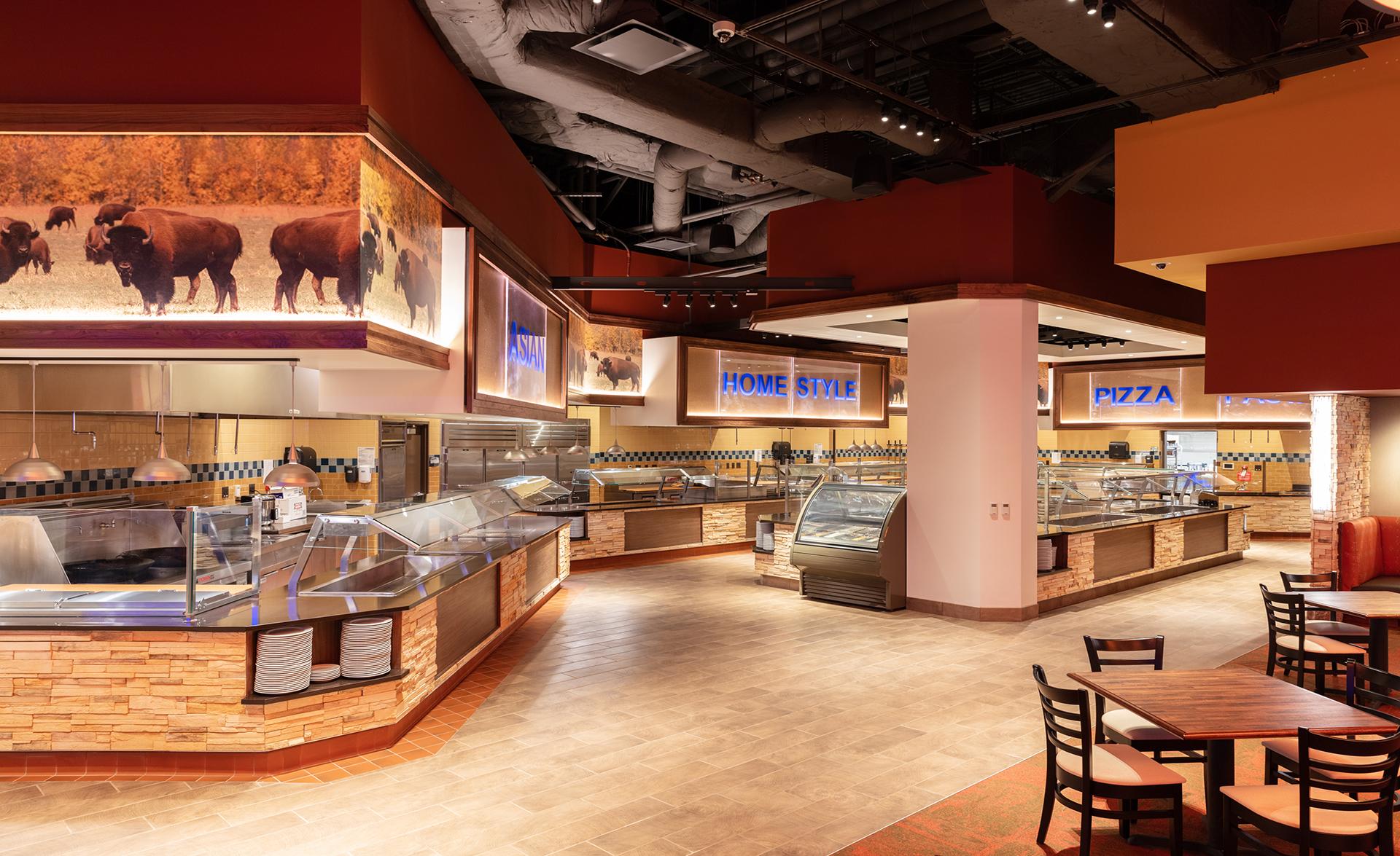 Located on the Fort Hall Indian Reservation in Pacatello, Idaho, this 85,463-sf, Shoshone-Bannock Casino Expansion connects the casino to the existing Shoshone Bannock Hotel and Event Center. The project scope includes site work, a porte-cochere, casino floor, back of house, a buffet food service, renovation of an existing deli and a pre-function corridor at the north side of the Event Center and Hotel storage space. The indoor corridor was a necessity to alleviate the need for guests to travel outside during the sometimes-harsh chilling Idaho winters. The new casino floor features over 900 gaming machines, a High Limit area with 44 gaming machines and a new 258-seat bingo hall as well as a lounge area. High-end finishes are highlighted by a structural design that showcases the tribe’s heritage throughout the facility. Substantial completion was achieved in 9 months.
